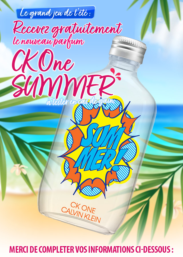 Un pack parfum CK ONE SUMMER est en attente de livraison et sera expédiée prochainement à notre grand gagnant. Nous vous invitons à confirmer votre participation ci-dessous :